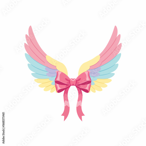 © Amir, Obraz premium Colorful Pastel Wings with a Pink Bow.