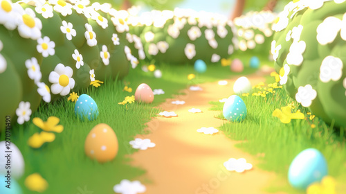 © INT888, Fototapeta premium colorful path surrounded by flowers and Easter eggs creates cheerful scene