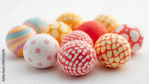 Fototapeta premium Colorful patterned Easter eggs arranged on a white background