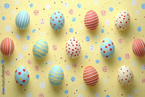Obraz premium Colorful Patterned Easter Eggs on Yellow Background