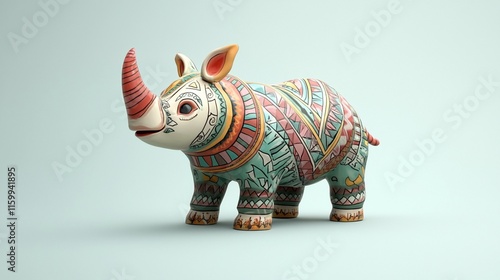 Obraz premium Colorful patterned rhino figurine.