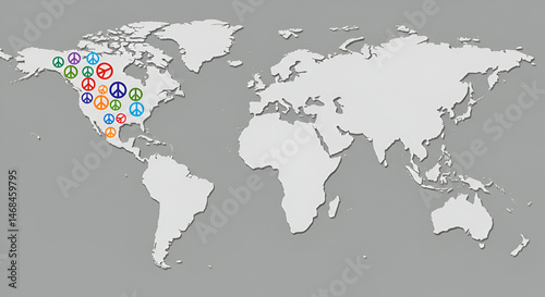 © Mas_Agungx, Naklejka premium Colorful peace symbols decorate North America map