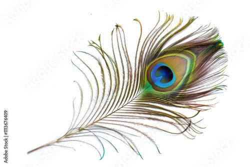 © darshika, Obraz premium Colorful peacock feather detail isolated on white background