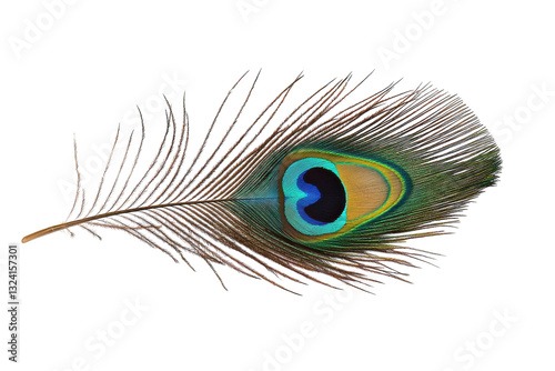 Obraz premium Colorful peacock feather illustration with blue green eye pattern isolated on...