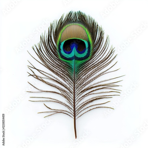 © Alex, Obraz premium Colorful Peacock Feather Isolated on White Background for Marketing Campaigns