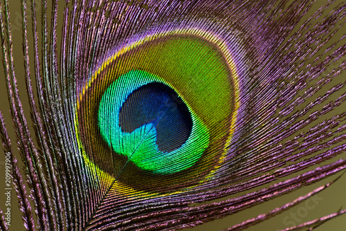 © Vladimir Arndt, Naklejka premium Colorful peacock feather, macro.
