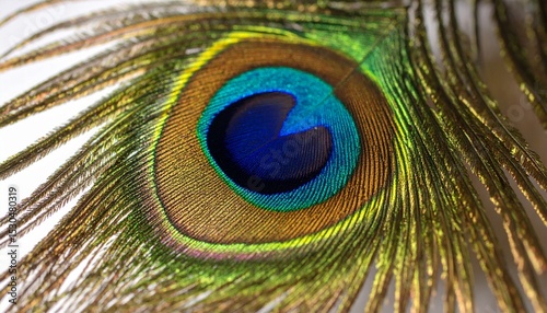© eliyashevskiy, Obraz premium Colorful Peacock Feather Showcasing Intricate Patterns and Vibrant Hues Under Natural Light