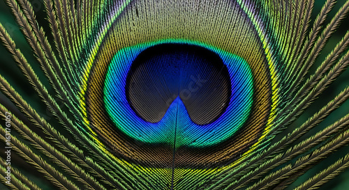 © Vectplus, Naklejka premium Colorful peacock feather showcasing vibrant patterns and textures in nature