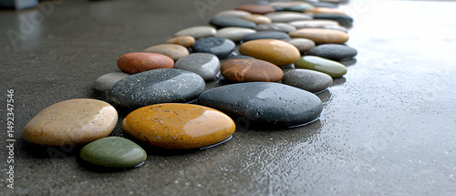 Fototapeta premium Colorful Pebble Pathway On Wet Surface