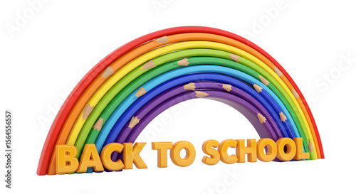 © 3D Demo Stock, Obraz premium Colorful pencil rainbow - back to school, isolated on transparent background