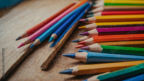 © claudunia, Naklejka premium Colorful pencils in an art studio bathed in natural light.