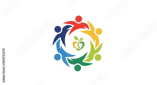 Fototapeta premium Colorful People Forming Circle Around Leaf.