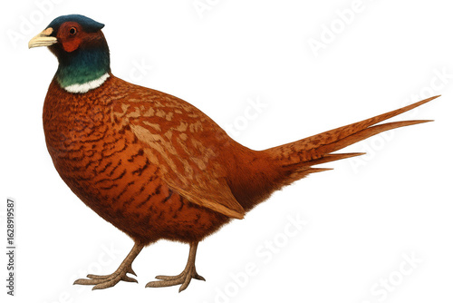 © Michael, Fototapeta premium Colorful pheasant displaying full body, standing with elegant long tail feathers against transparent backdrop, highlighting rich plumage details