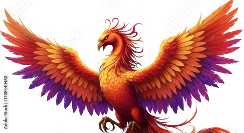 © Роман Соловьев, Fototapeta premium Colorful Phoenix Bird from Chinese Legend on White Background