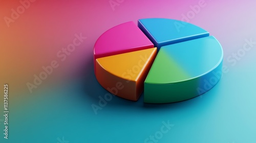 © Plaifah, Obraz premium Colorful Pie Chart 3D Rendering on Gradient Background for Data Visualization