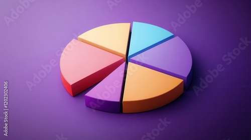 Obraz premium Colorful pie chart on a vibrant purple background representing data...