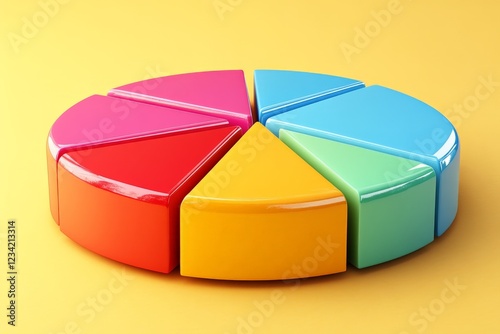 © ChaoticMind, Obraz premium Colorful pie chart representation in vibrant shades against a bright yellow background