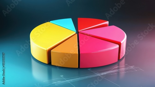 Obraz premium Colorful pie chart sections on a sleek surface, illustrating data...