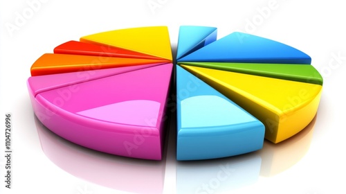 © Plaifah, Obraz premium Colorful Pie Chart Segments with Reflections on White Background