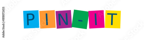 © amenagraphics, Fototapeta premium Colorful pin it text isolated on transparent background