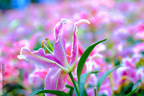 © themorningglory, Fototapeta premium Colorful pink lily flower in winter garden