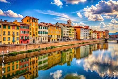 © Danicha, Fototapeta premium Colorful Pisa Buildings & Arno River Skyline - Italy Travel Photography