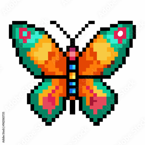 © inspiring , Obraz premium Colorful Pixel Art Butterfly Illustration in Retro 8 Bit Style