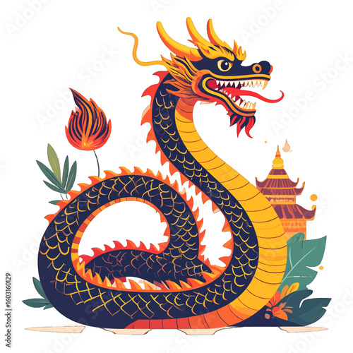 © Muhtarom, Obraz premium Colorful Pixel Art Chinese Dragon Illustration