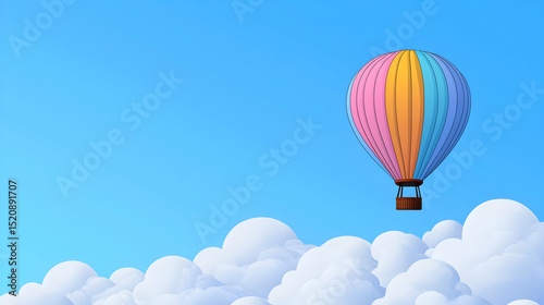 Naklejka premium Colorful Pixel Art Hot Air Balloon Against Blue Sky And Clouds
