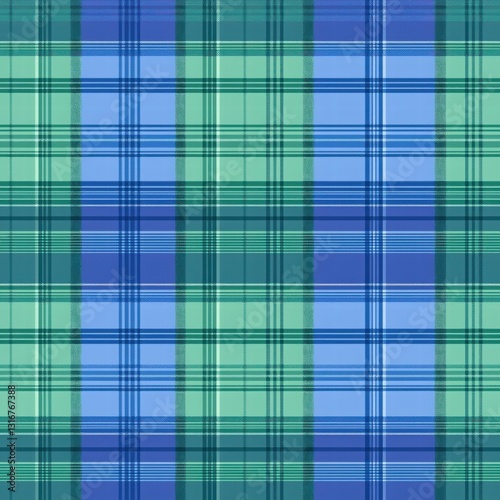© Phunnada, Fototapeta premium Colorful Plaid Pattern in Green and Blue Tones for Fabric Design