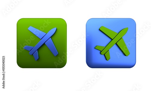 © Vadim, Fototapeta premium Colorful Plane icon isolated on white background. Flying airplane icon. Airliner sign. Square button. 3D render illustration