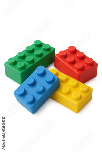 © Boris, Naklejka premium Colorful plastic building blocks isolated on transparent background