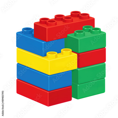 © LTh, Obraz premium Colorful Plastic Building Blocks Stack