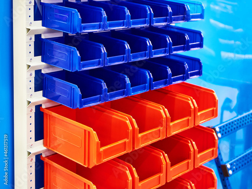 © Sergey Ryzhov, Fototapeta premium Colorful plastic containers in the store