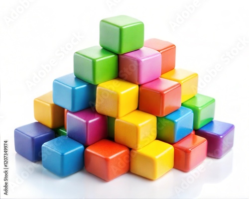 © Farida9377, Fototapeta premium Colorful plastic cubes, stacked blocks, toy building bricks, educational playset