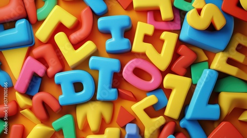 © Photock Agency, Obraz premium Colorful Plastic Letters Spread Across a Bright Background
