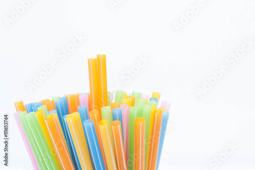 © ueaphan, Fototapeta premium Colorful plastic straws used for drinking water or juices on whi