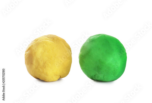 Fototapeta premium Colorful play dough on white background