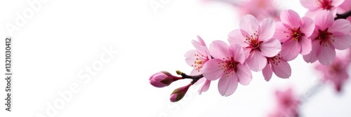 © Jame, Obraz premium Colorful plum blossoms against white background, cherry blossom, branch