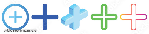 Obraz premium Colorful Plus Sign Icons Set