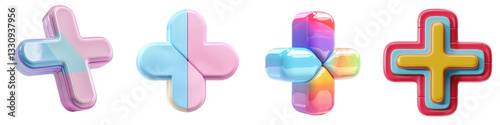© Tejodi, Obraz premium Colorful plus signs collection. Different designs on white background isolated on white or transparent