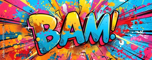 Obraz premium Colorful pop art background featuring "BAM!" Dynamic visuals, Bold graphics,...