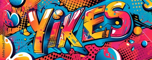 © Іван Ніколов, Naklejka premium Colorful pop art background featuring "YIKES." Comic book elements, Dynamic visuals, Vibrant vector
