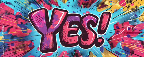 © Іван Ніколов, Obraz premium Colorful pop art background with "YES!" inside. Comic book elements, Bold graphics, Vibrant vector