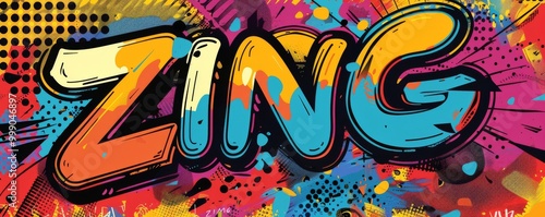 © Innovator587, Naklejka premium Colorful pop art background with "ZING" inside. Comic book elements, Bold patterns, Vibrant vector