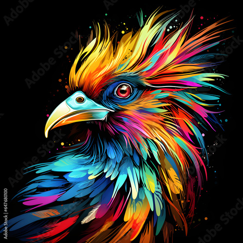 Fototapeta premium Colorful poster with bird portrait isolated on black background
