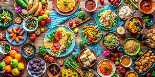 © Danicha, Fototapeta premium Colorful Potluck Poster Design Featuring Delicious Food, Invitations, and Celebration Themes for Events