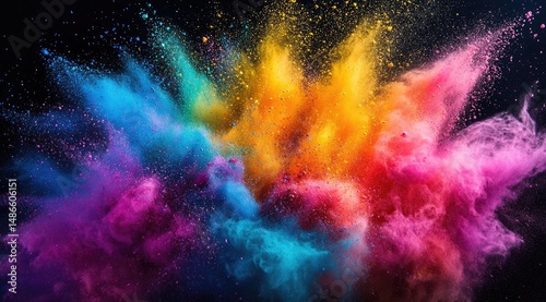 © Pixel Sculptor, Obraz premium Colorful powder explosion against black background (4)