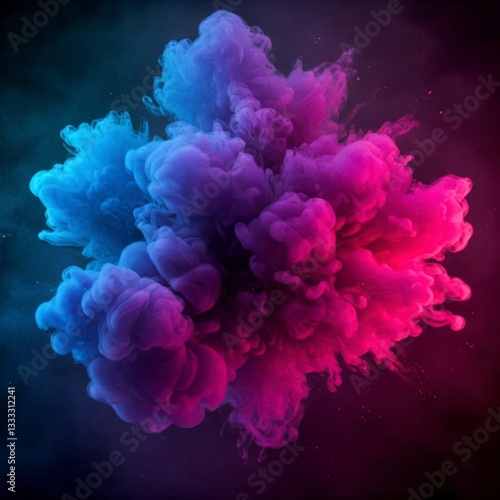 Fototapeta premium Colorful powder explosion, blue and pink hues. Abstract dust cloud, vibrant...