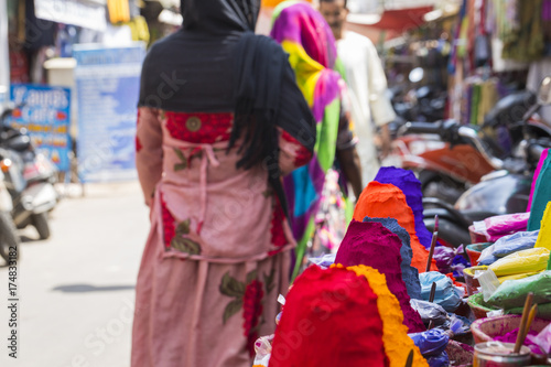 Fototapeta premium Colorful powder for sale on the festive occassion of Holi in India.